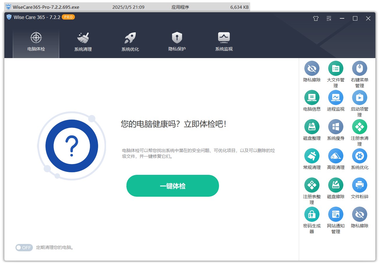 | 4,WiseCare365-Pro-7.2.2.695 | 6.47 MB (6,792,848 字节) |